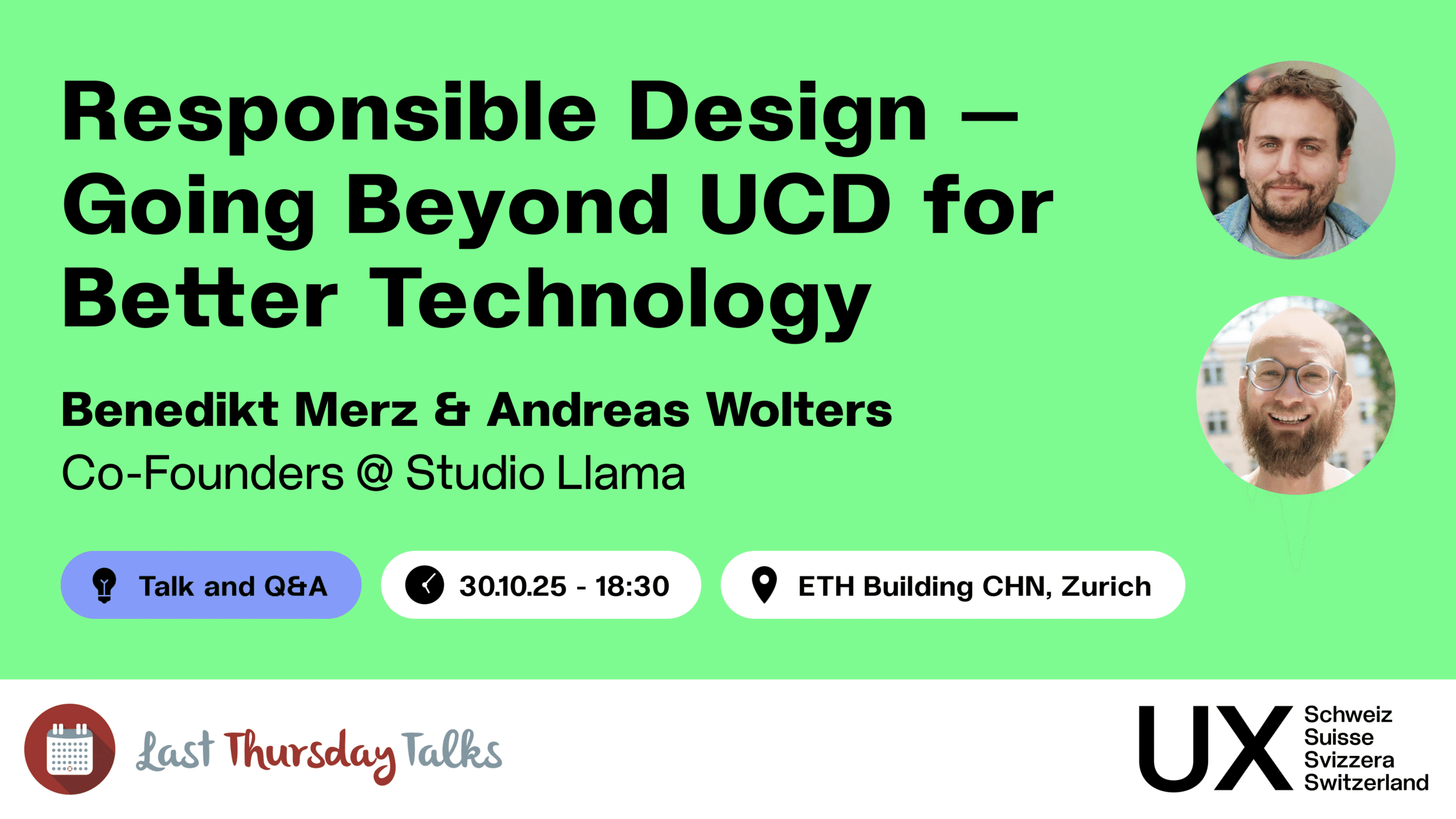 As UX designers, we advocate for users’ needs and create solutions with user-centered methods. Yet technology increasingly causes harm: dependence, stress, exclusion, and alienation. What’s going wrong? This talk outlines the problems—but focuses on ways forward. We present a practical framework for responsible design, with principles and methods for everyday use. Our aim is to encourage UX practitioners to question assumptions, identify risks early, and build products that truly benefit people.